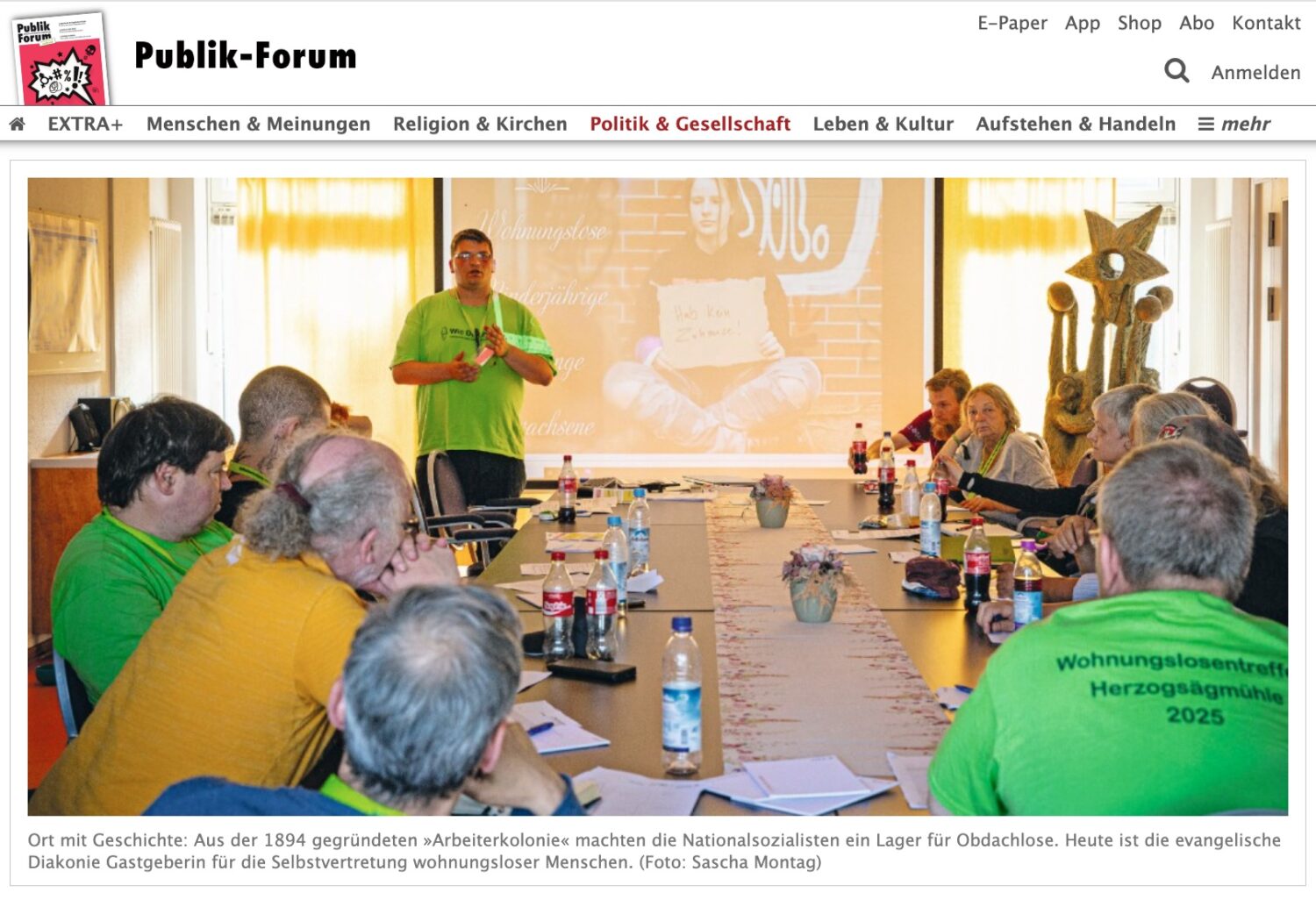 Daarbij kwamen ze terecht op een bijzonder evenement: de jaarlijkse ledenvergadering van de vereniging ‘Zelfvertegenwoordiging van dakloze mensen’. Die ALV vond plaats in de vorm van een tentenkamp in Herzogsägmühle. Voor een deel van de aanwezigen is een tent een gebruikelijke verblijfplaats; alle leden delen de ervaring van dak- of thuisloosheid.